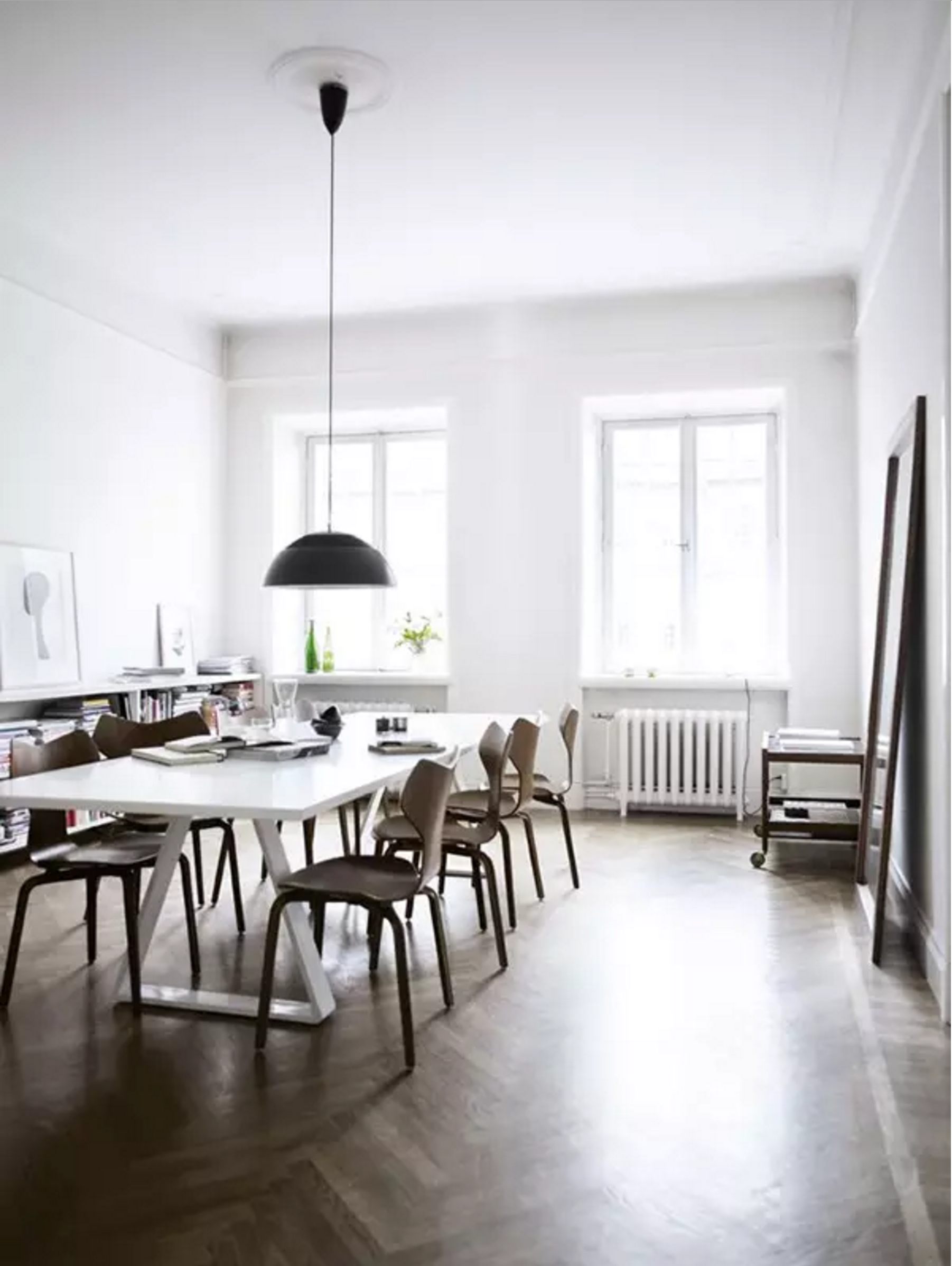 Birgitta Wolfgang Drejer的设计中,我们能明显感地色调变化的胡桃木地板比起单一色的地板更加生动有趣。