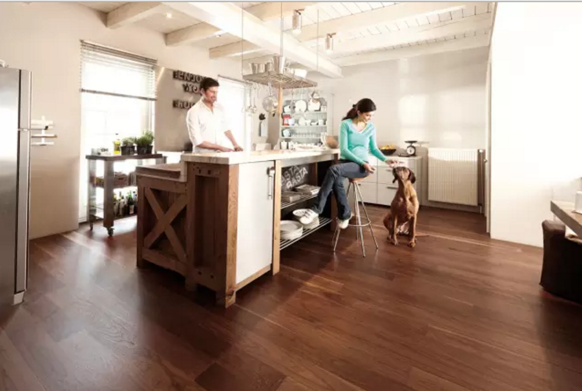 当铺设地板时,胡桃木浓郁的巧克力色基调显得十分温暖。它能呈现非常经典的风格,然而当胡桃木与深色家具和现代(黄铜)灯具组合时,它又能灵活地适应更具现代感的环境。