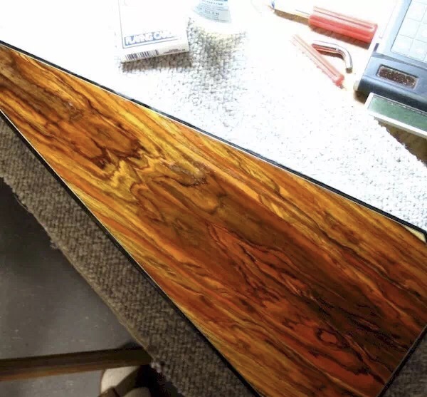 上二图:微凹黄檀木材样板(上为砂光,下为漆光)