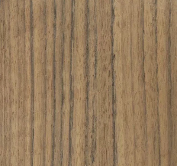 色泽:颜色变化多样,黄色至红褐色,甚至黑褐色,有深褐色、灰色、黑色的条纹。边材中等宽,灰黄色,与心材区别非常明显。有时可见卷曲或者杂色斑点花纹。