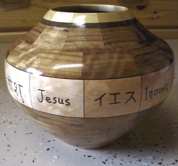 上图:奥文格(Ovangkol)车旋制品,与枫木(Maple)、非洲鸡翅木(Wenge)和黄心木(Yellowheart)拼接制作