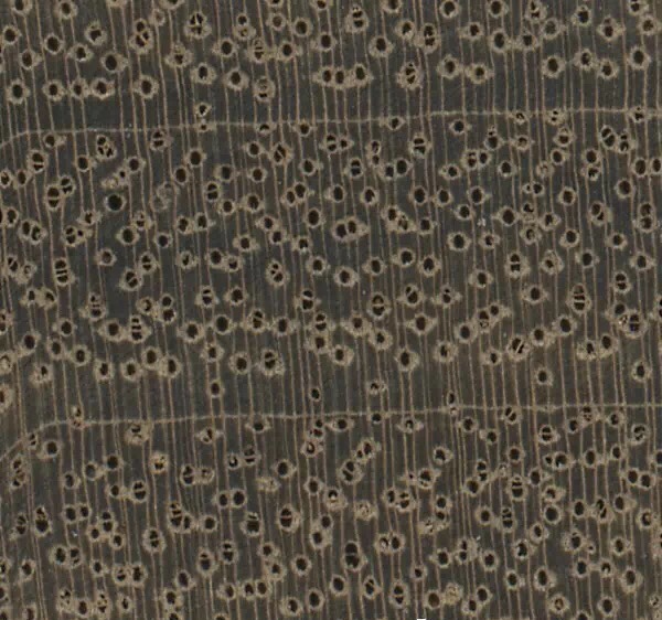 纹理与材质:纹理直至略交错,木材结构中至粗,光泽度中。