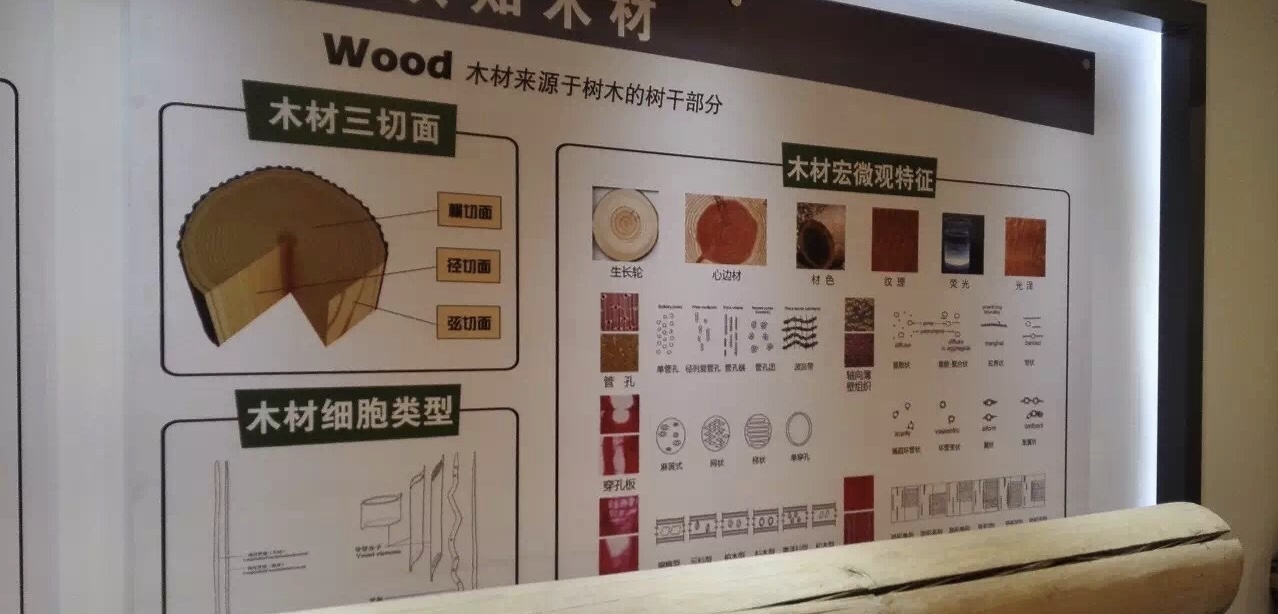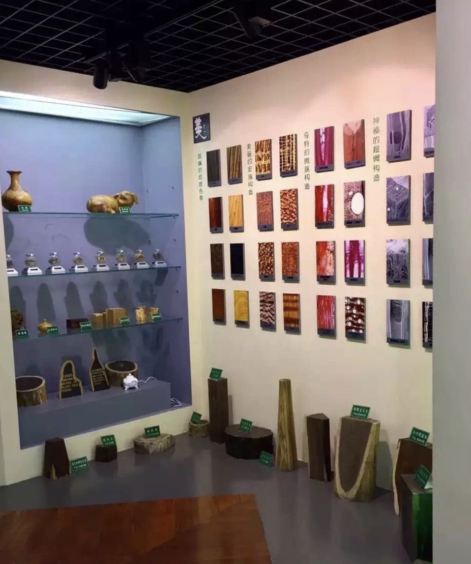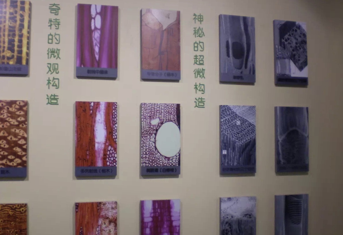 2、 木材标本展室——按木材用途分类展柜,“红木”展柜,木材显微图片和收藏副号木材标本;