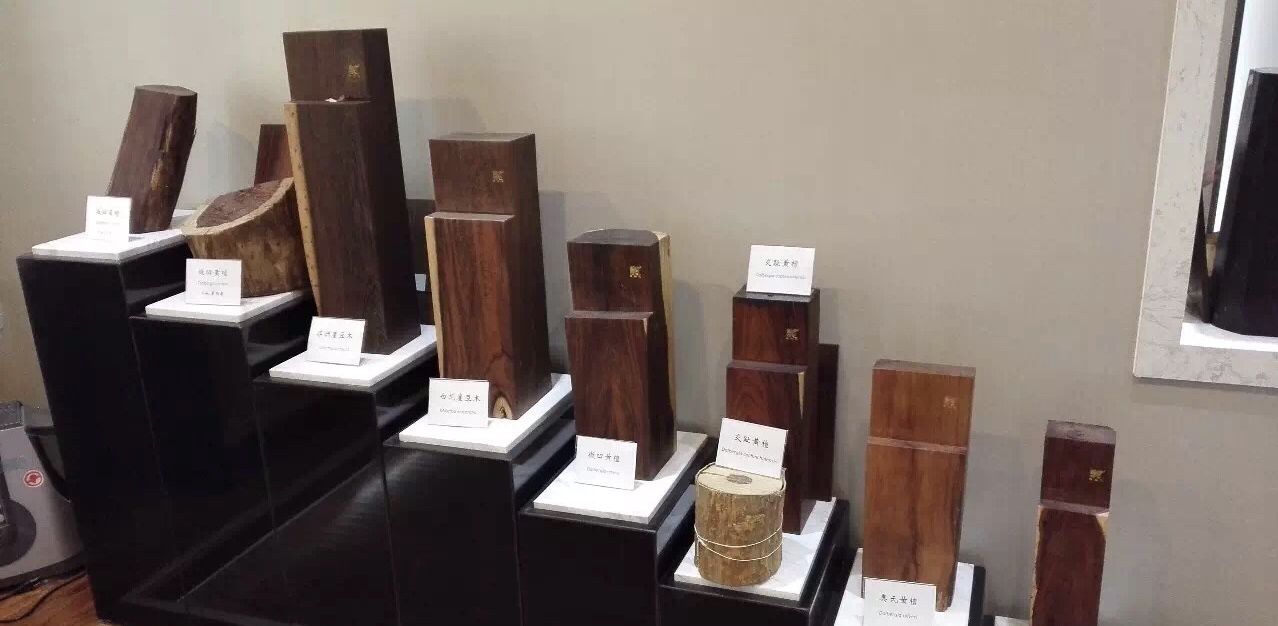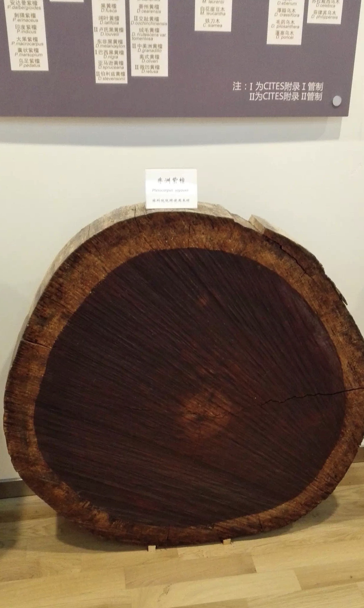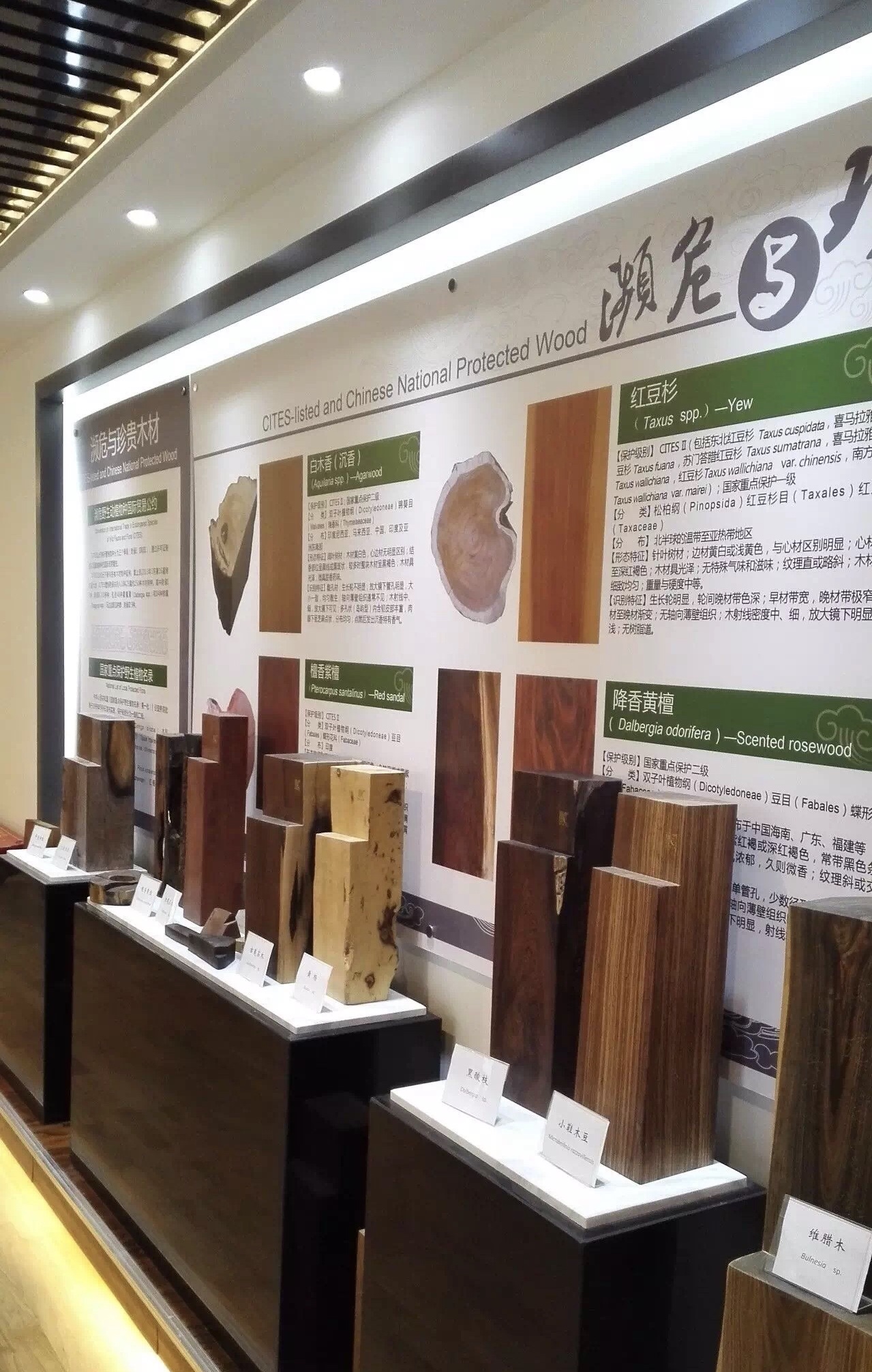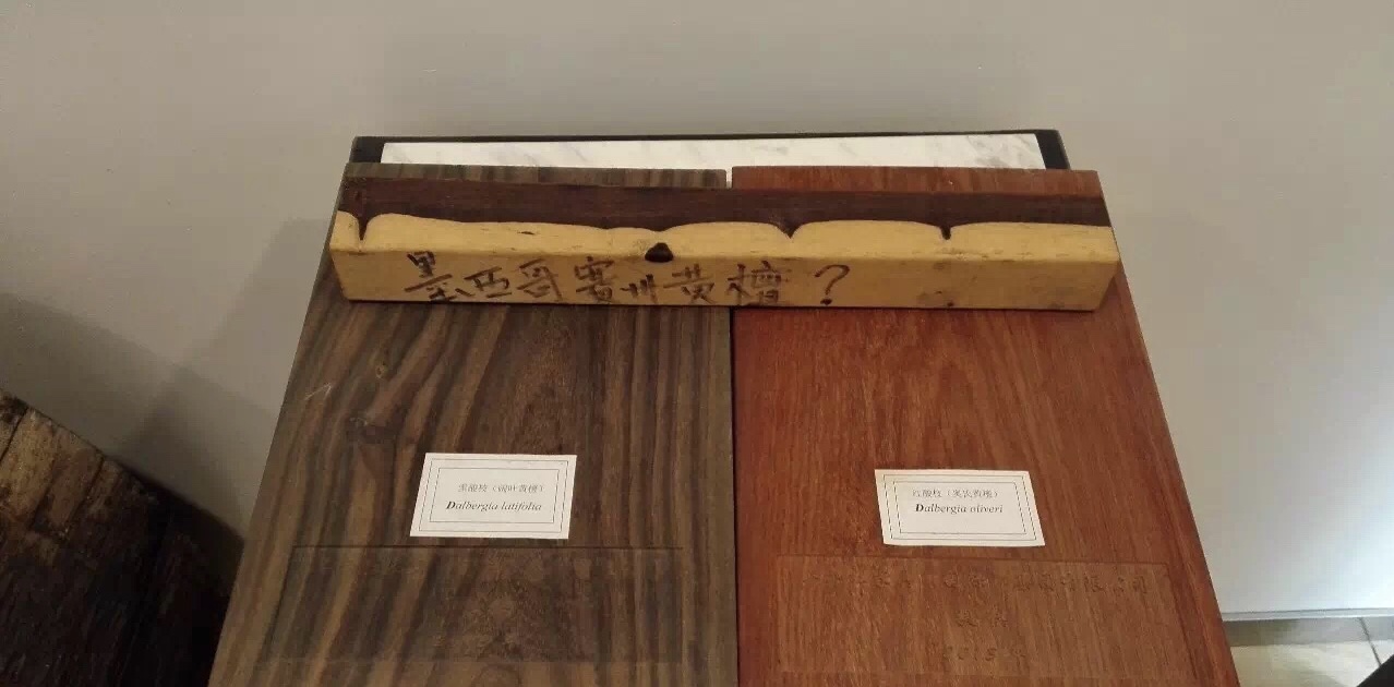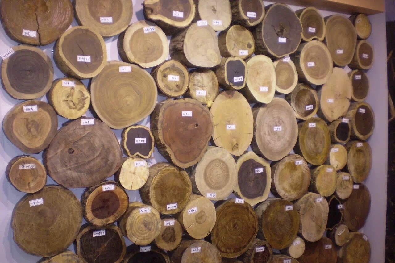 上图:中国林科院标本馆内的濒危树种木材展示