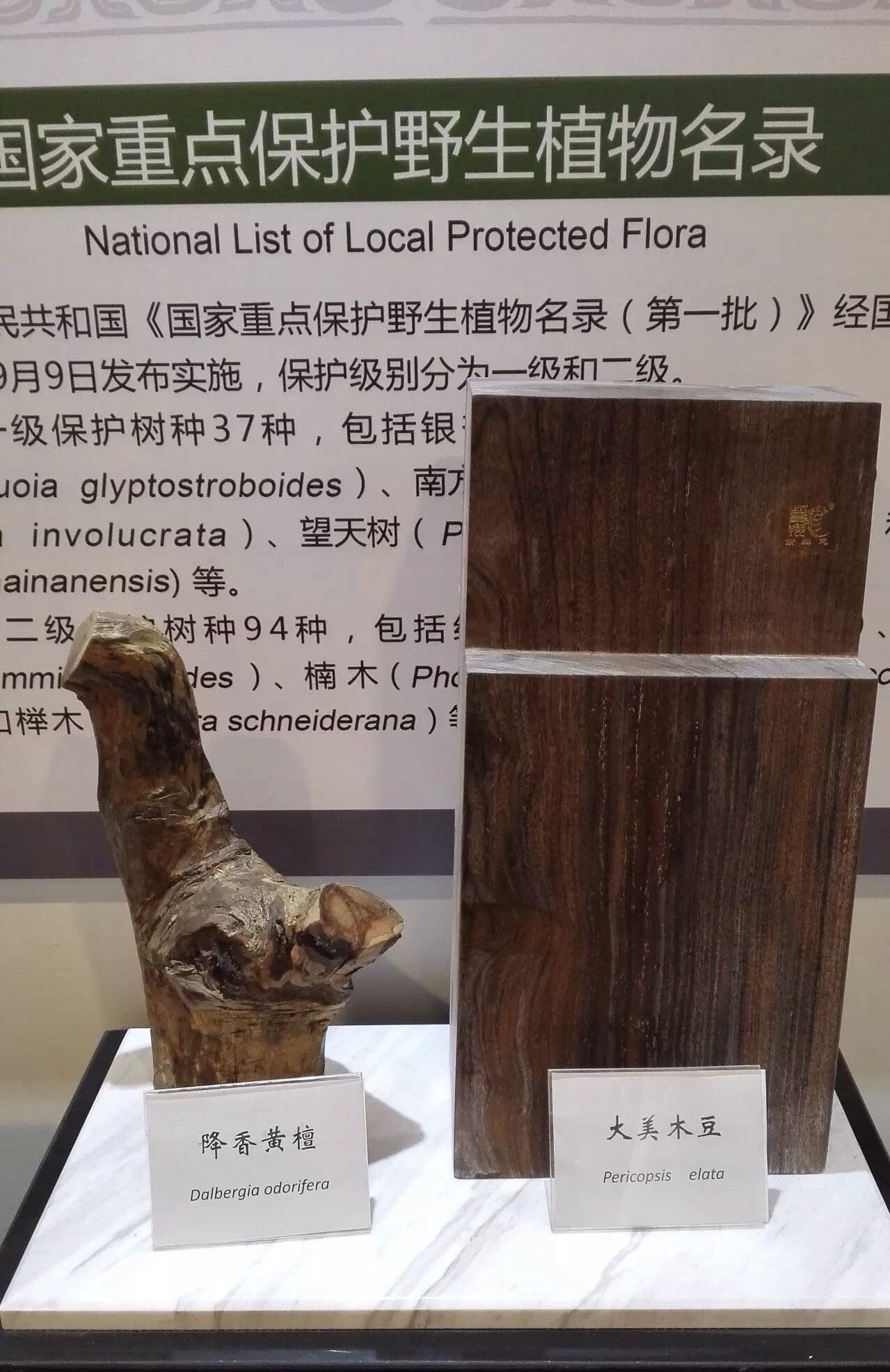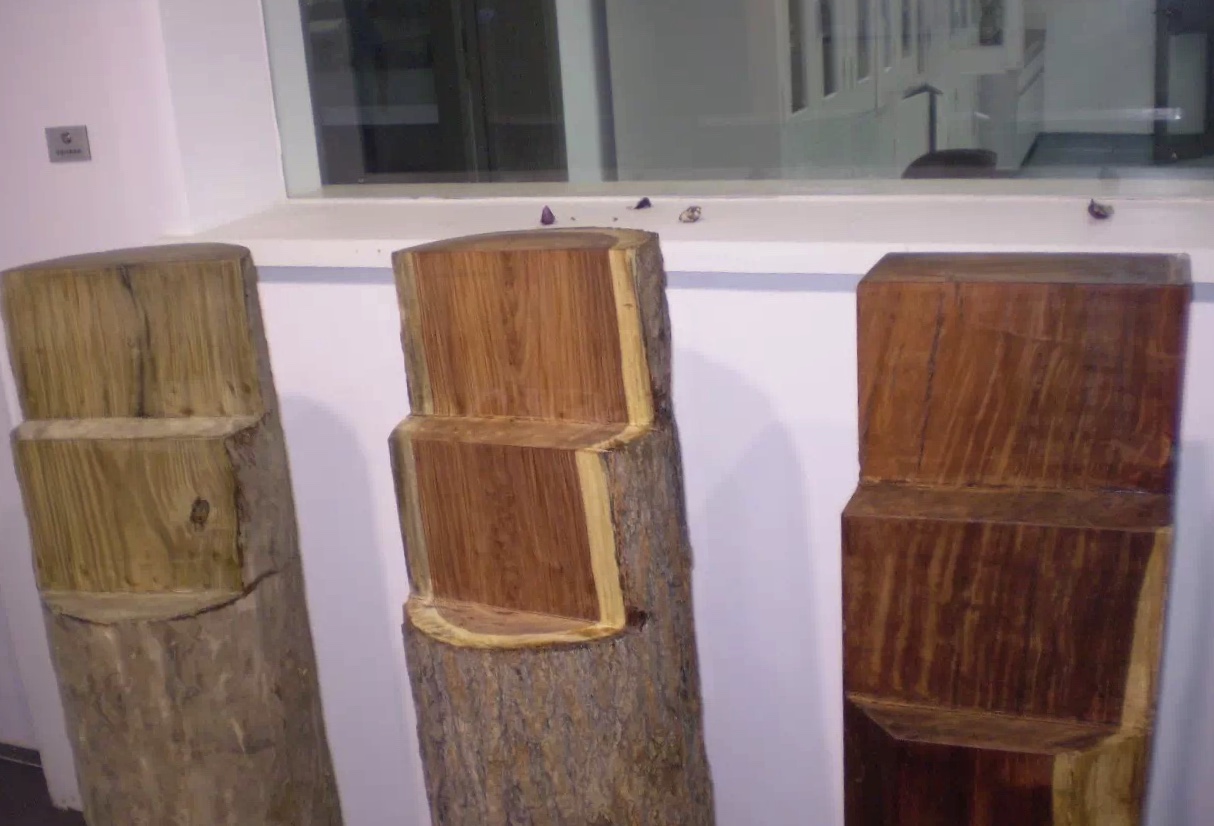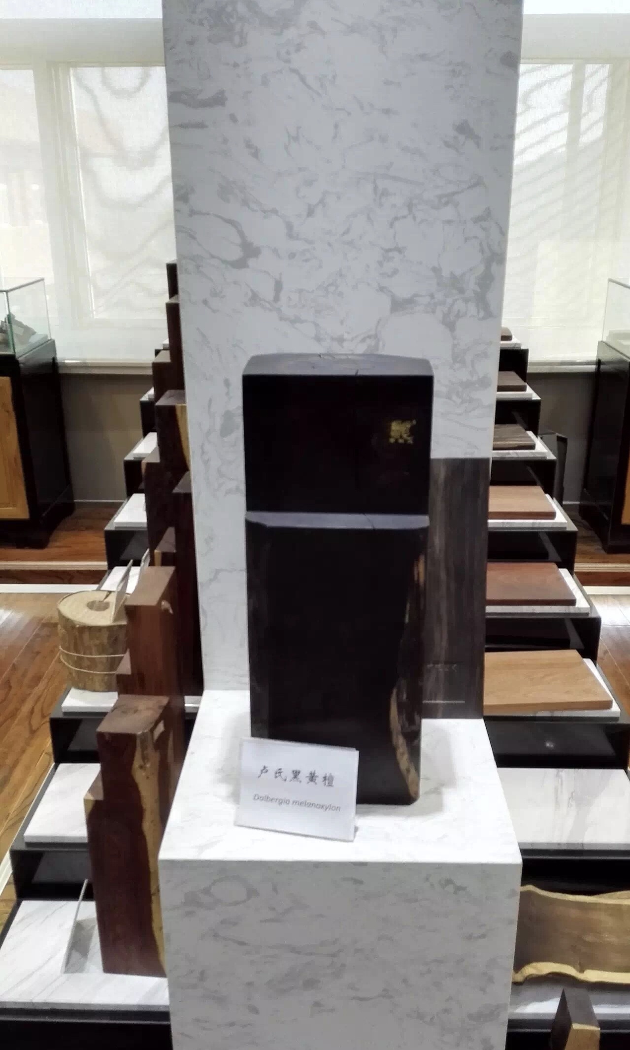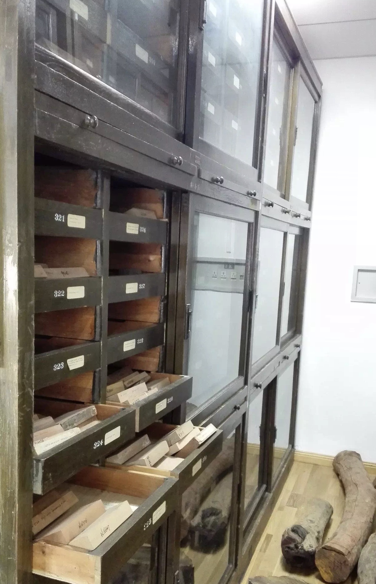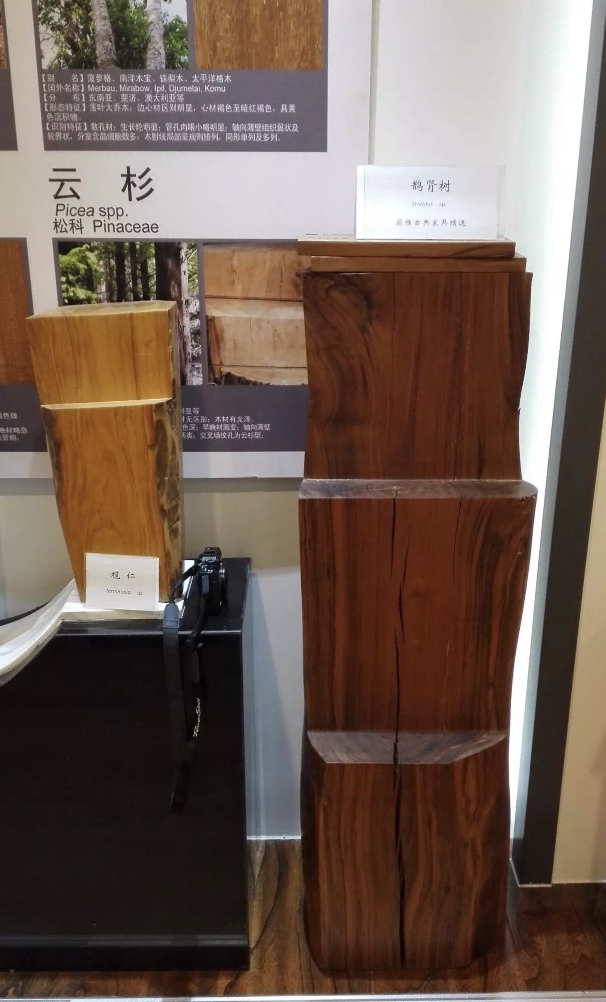 上图:中国林科院标本馆内的濒危树种木材展示