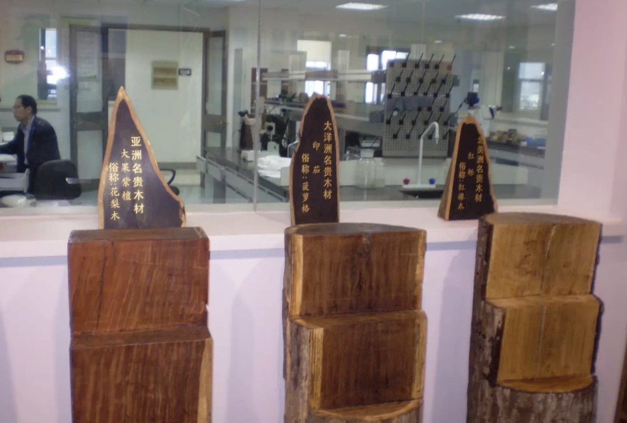 实验室以庞大的木材标本为基础,获得中国合格评定国家认可委员会(CNAS)认可项目达540项,基本覆盖我国木材市场上常见的木材种类。成功组织了我国首个木材树种鉴定能力验证活动——CNAS TO630 “东非黑黄檀木材树种鉴定能力验证”,截至2016年12月已组织了3次木材树种能力验证活动。多次成功组织了国家质检总局进境木材检验检疫培训、中欧FLEGT行动计划及欧盟法案培训等专业培训活动,培训人数达3 000余人。近五年来,实验室共接收来自广东、天津、河南、山西、陕西、浙江、福建、江苏等省市各地的海关、检验检疫及检验认证集团委托进口木材检测任务共600余批次,涉及CITES管制树种共30余批次,多次帮助海关立案,实验室因此获评2016年度“打击野生动植物非法贸易提名卫士奖”。连续6年承担江苏省工商流通领域实木地板抽查,共完成了670批次的实木地板抽检工作。近年来,成功帮助消费者维权20余次。实验室先后获批江苏省科技公共技术服务平台、江苏省中小企业公共技术服务四星级示范平台,年服务国内中小企业200余家。