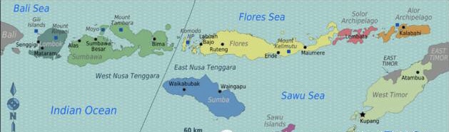 上图:东努沙登加拉各岛示意及整个群岛在印尼的位置