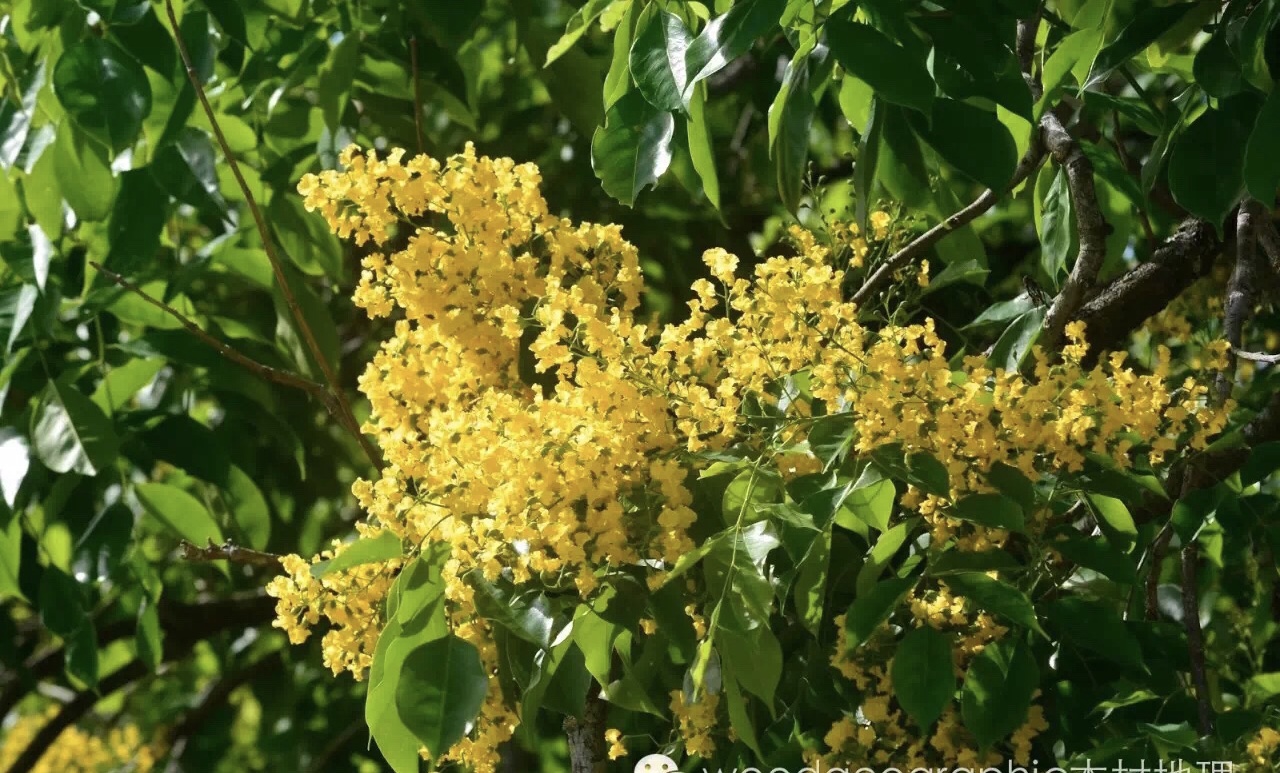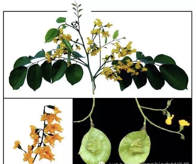 上三图:印度紫檀的花和开花的树木(树木图片来自马来西亚)
