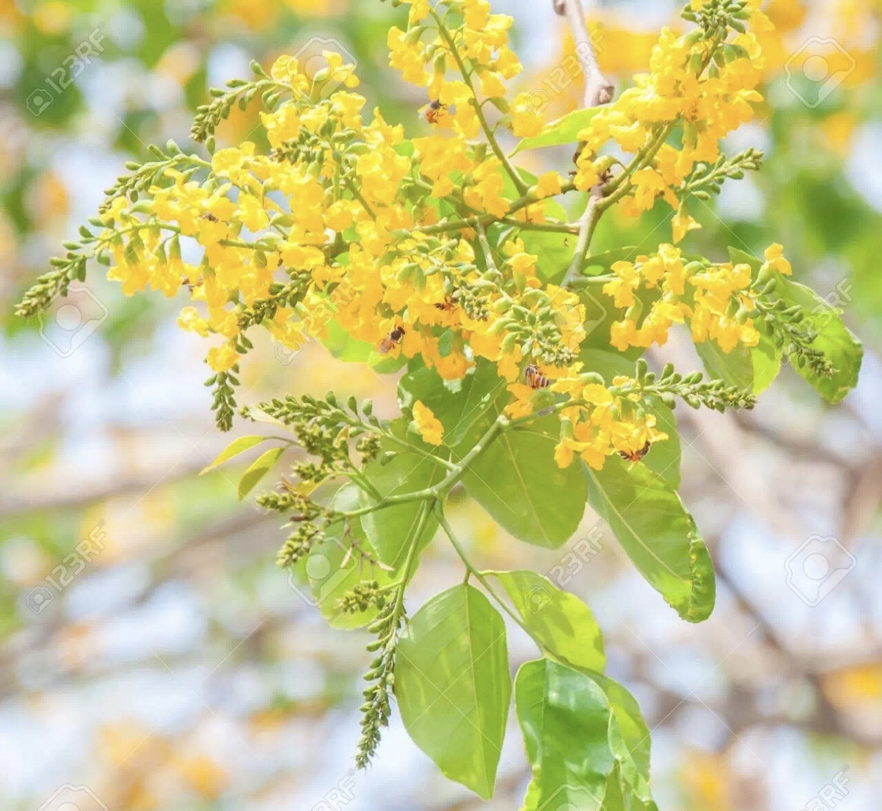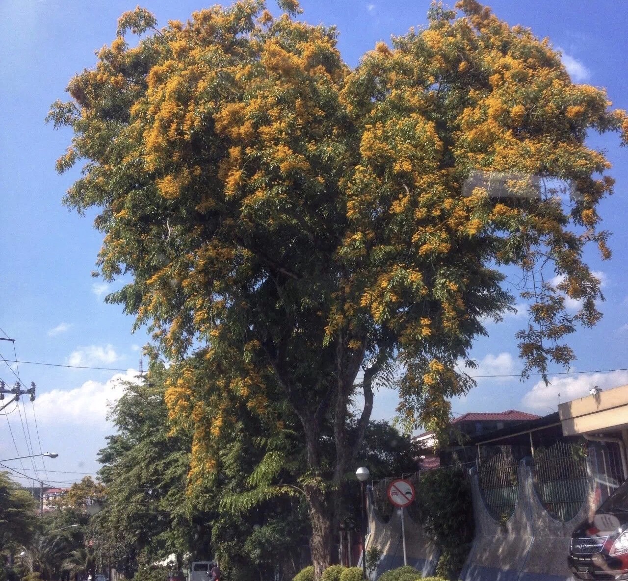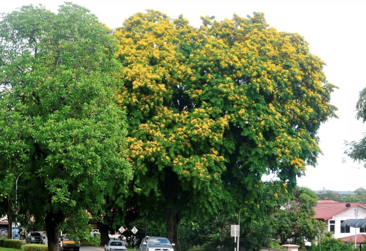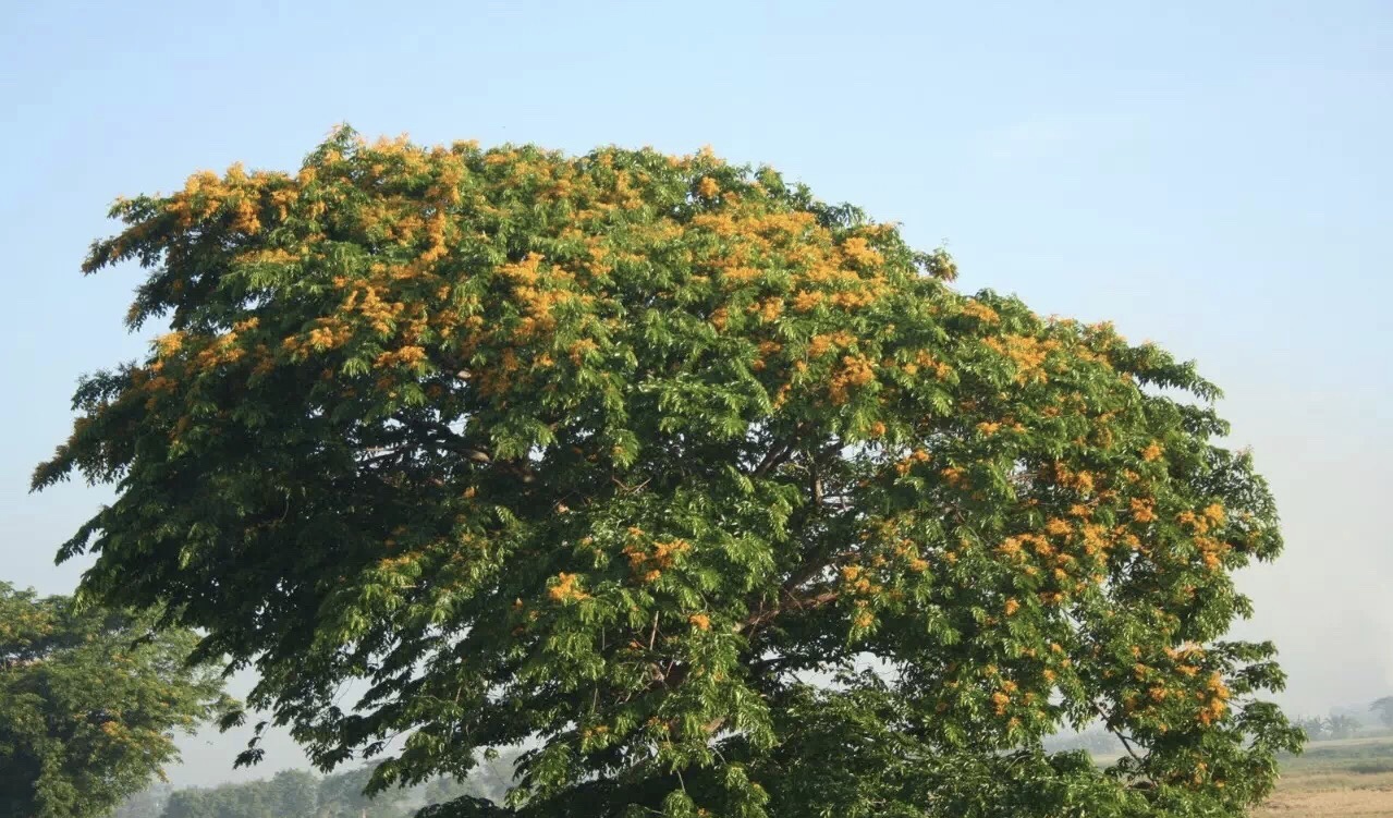 上二图:开花的印度紫檀树(即纳拉树,图片来源:菲律宾)
