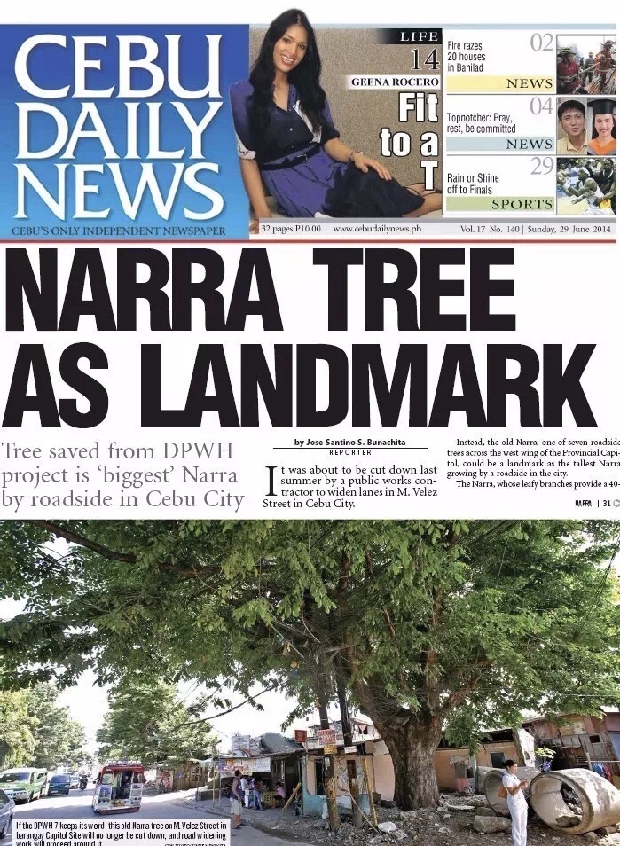 上图:菲律宾宿雾地方新闻所报道的印度紫檀(纳拉树)